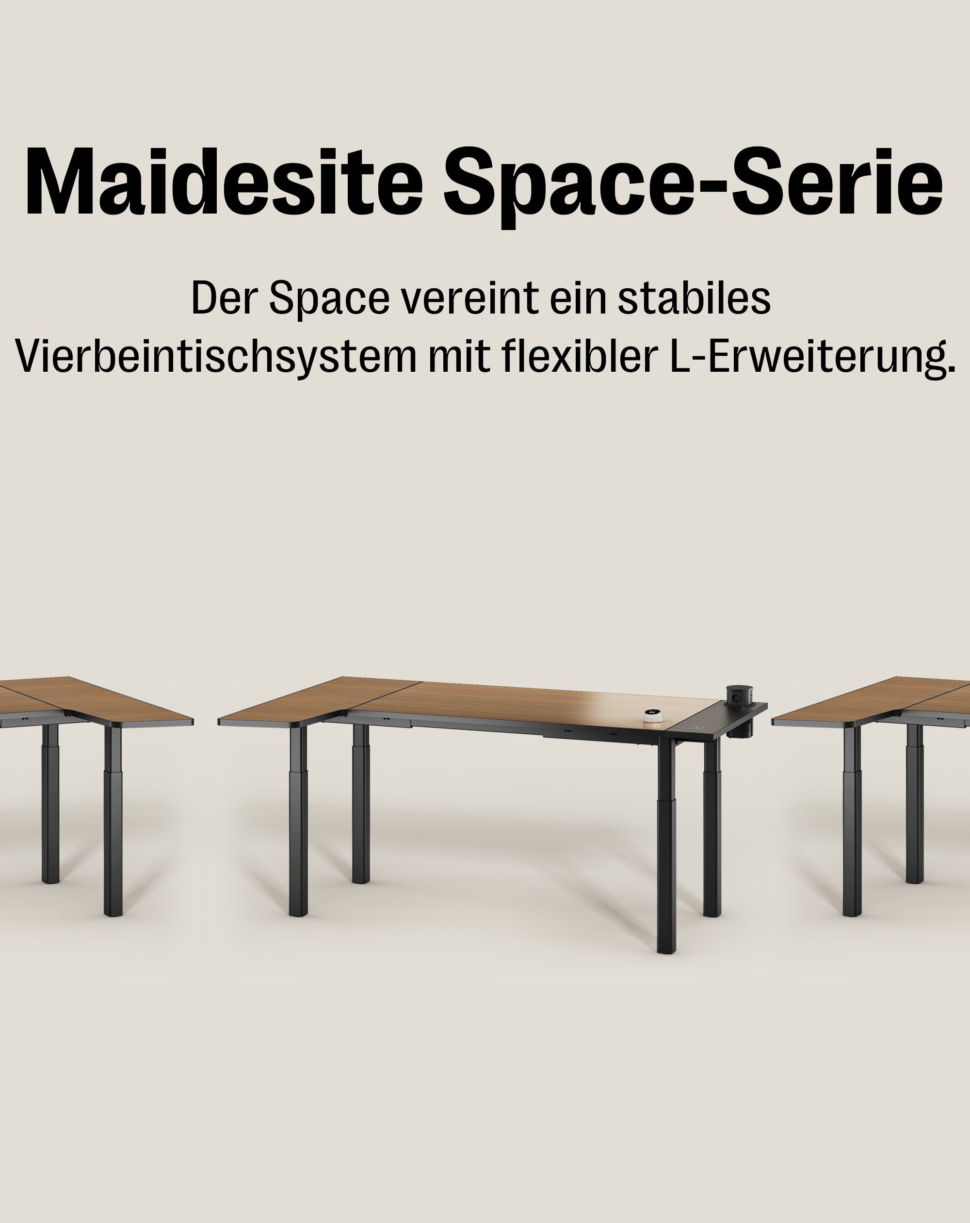- Die robuste Vierbein-Struktur sorgt für deutlich weniger Wackeln und höhere Gesamtsteifigkeit. Ideal für große Tischplatten, L-Form-Setups und produktive Workflows.