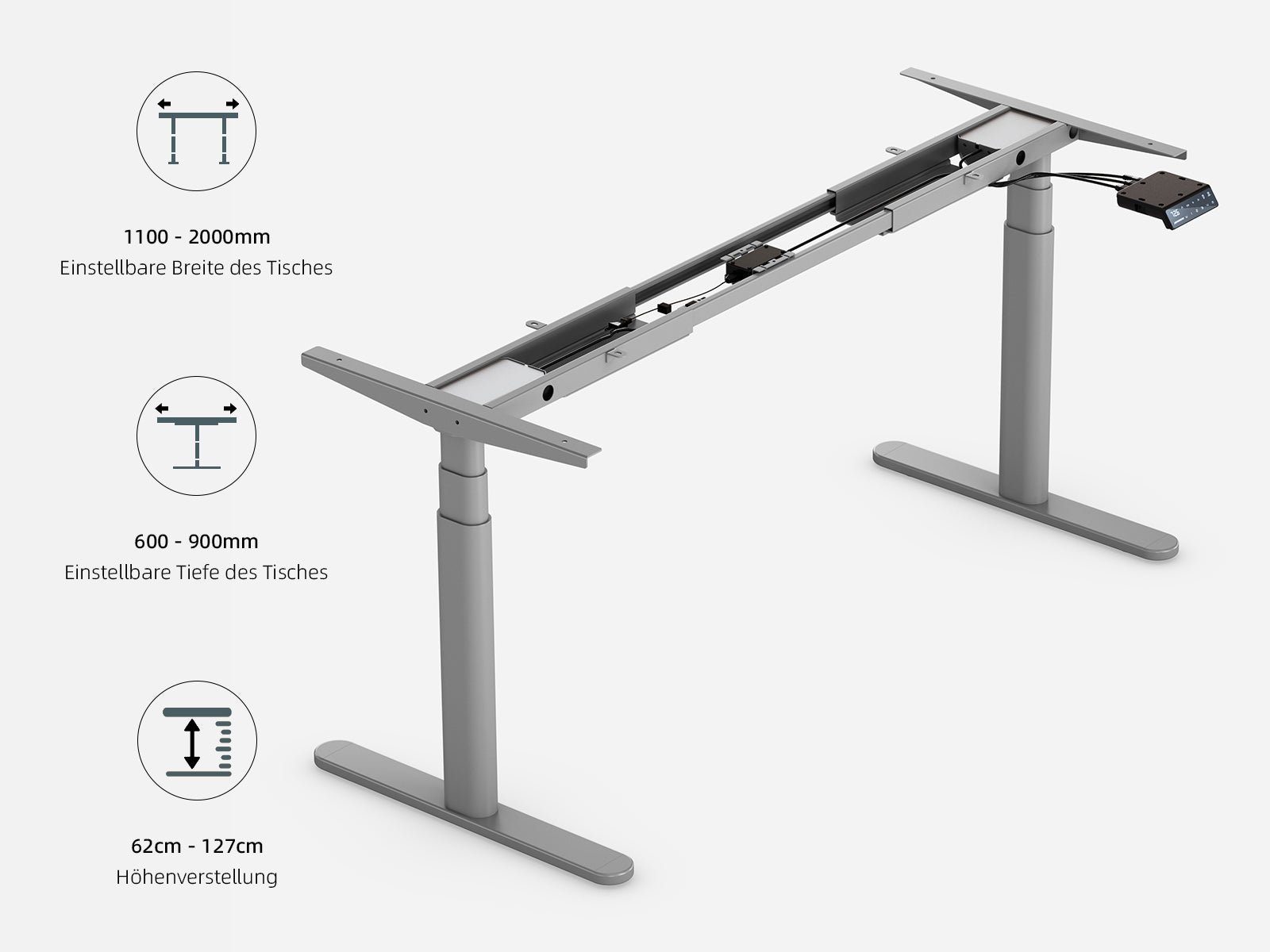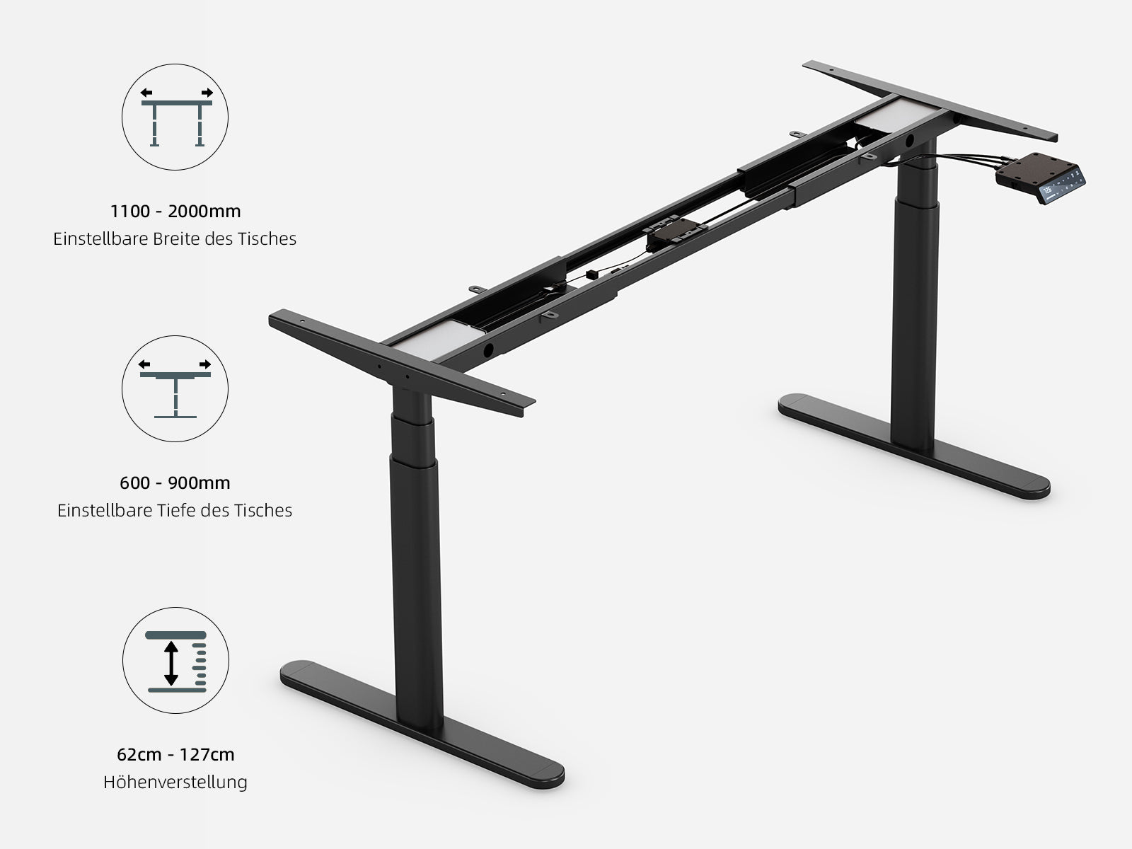 Der 3-stufige tischgestell höhenverstellbar, der über den größten Höhenverstellbereich von 62-125 cm auf dem Markt verfügt