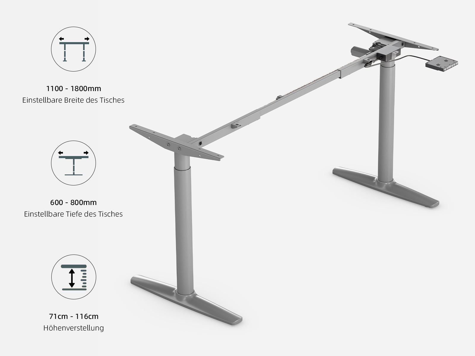 Höhenverstellbarer Schreibtisch mit 2 stufigen Säulen ist nur für die Körpergröße von 1,75-1,95 m geeignet.